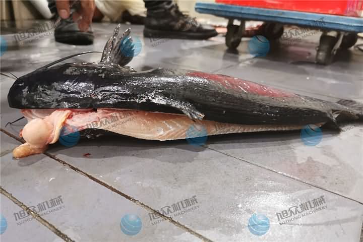殺魚機的效果沒有比親眼看到的更直觀!我們的客戶來自五湖四海皆有,有遠在國外的,有近在杭州的,遠距離的客戶一般建議加個微信先發視頻看看,如果意向非常大直接淘寶或者阿里或者直接轉賬定購,有意向但是還有些猶豫的客戶覺得邁開自己的腳,帶來自己的魚來到現場試殺魚機,現場直觀殺魚機的效果,而這次上門的客戶是做水產業的,殺魚的種類特別的多,除了常見到的草魚,還帶了江團來到了現場,江團沒有魚鱗所以一般不適用XZ-018開肚去鱗殺魚機或者是XZ-017開背去鱗殺魚機,但是他就是想要購買一臺機器來完成殺魚操作,于是現場用殺魚機演示: