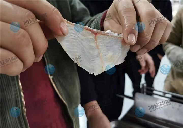 斜切魚片機(jī)操作非常的簡單,這不是騙人的哦!前天有客戶來試切魚片機(jī),剛好試機(jī)師傅再試另一臺包子機(jī),為了減輕同事們的壓力,于是作為攝影師的我親自上陣,因?yàn)槲遗倪^很多視頻,看過無數(shù)遍師傅們的操作過程,于是我便先拿起客戶帶來的黑魚,去完鱗分半的那種,不過發(fā)現(xiàn)大的魚骨沒有剔除,對于第一次接手的我來說,剃魚大骨也是需要一門技巧,花了些時間將魚骨剃掉后,放在送料板上放點(diǎn)水潤滑下,送入魚槽中,開啟開關(guān)等個十幾秒魚片就切好了。客戶看了效果后帶回去給大廚看了之后,今天就轉(zhuǎn)賬定購設(shè)備了。他說【不光是切魚片機(jī)切出來的魚片效果好,還有一個原因就是操作簡單,他也知道我第一次上手試切魚片機(jī),在沒人幫助下就能完成,這樣以后如果來新人也能很快的上手】