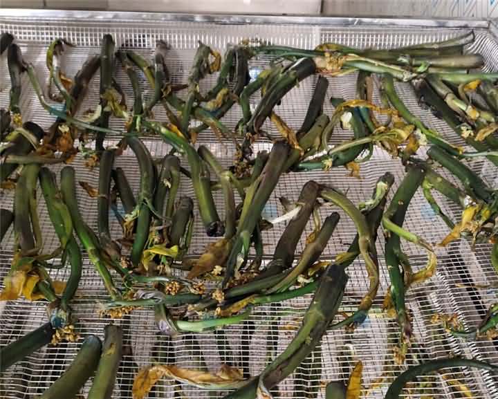 菜苔烘干選用旭眾空氣能烘干機,烘干菜苔前后對比效果: