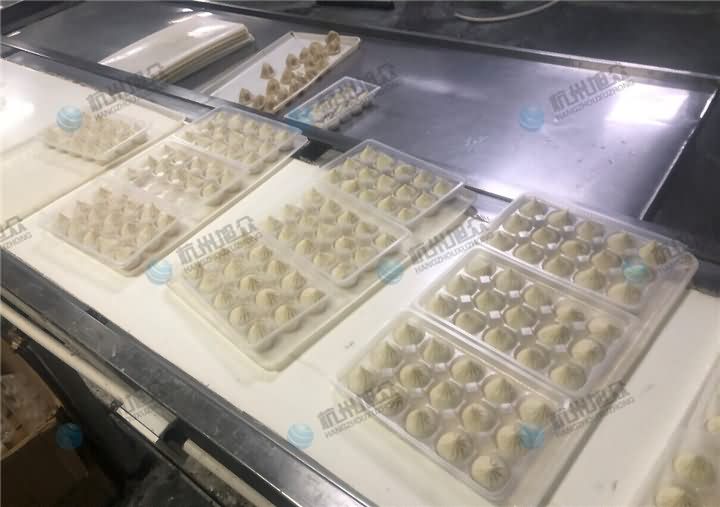 湯包食品廠因員工人數不足,只能想到用包子機來代替人工,于是便帶著他們的物料來到旭眾現場,客戶主要是做湯包的,于是便介紹了XZ-960多功能包子機并現場演示做湯包效果再蒸出來品嘗口感,再符合他們現在所做的湯包后直接定購了3臺包子機配上他們在外定做的輸送線。便搭出了湯包機流水線設備。
