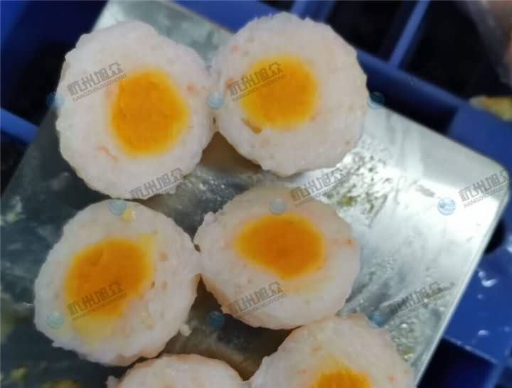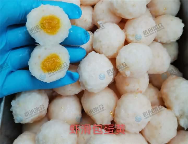 旭眾XZ-609包心肉丸機制作蝦滑包蛋黃效果: