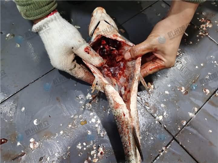 其實看圖一的時候可以看得出來,接近魚頭部分的魚鱗沒有去除干凈,這就是人員在放魚的過程速度過快,所以魚鱗去除的不是很干凈,不過基本上也打松了,人員清理的時候稍微用刀帶一下便可脫落。更多殺魚機詳情撥打4008852117咨詢客服熱線。