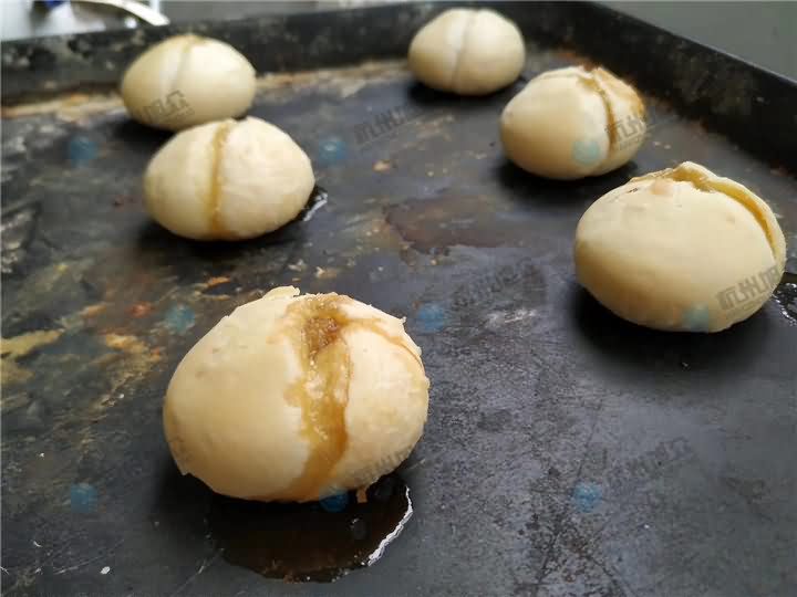 客戶自備五斤左右的蒜蓉餡料,現場選擇全自動酥餅機來制作蒜蓉酥餅,烘烤后的滿滿的蒜蓉,濃濃的香味!