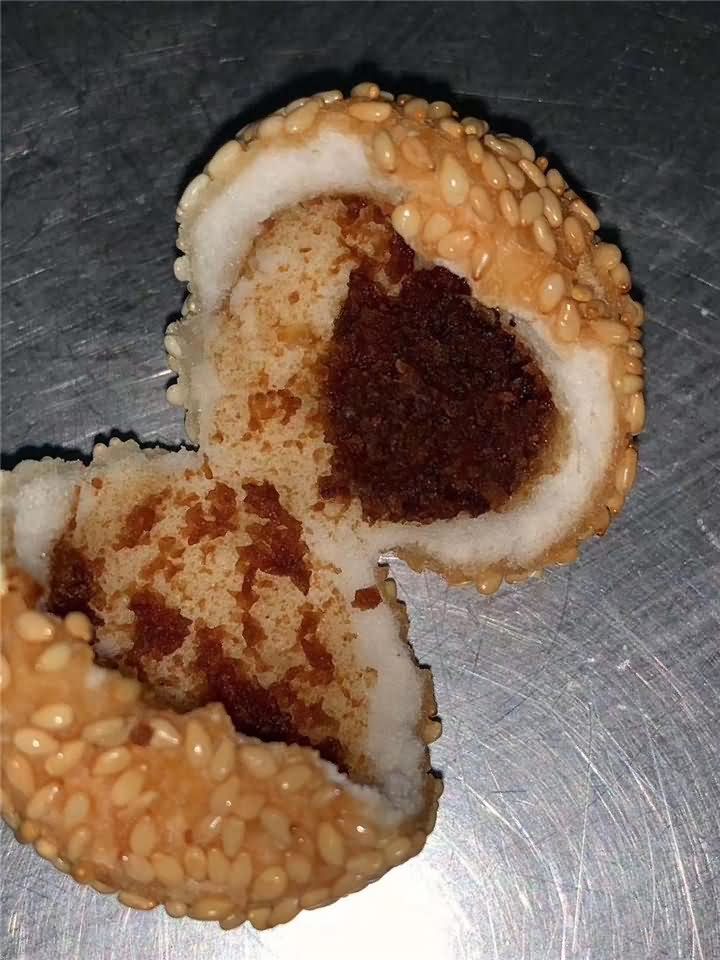 剛剛炸出來的麻圓,這成色不錯(cuò)吧!