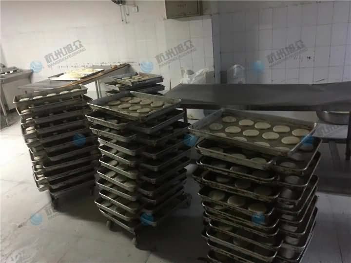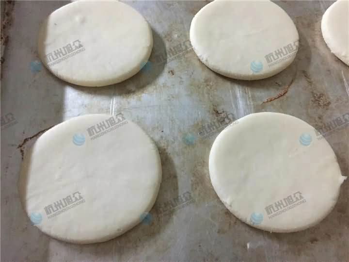 江老板專門購買酥餅機只為做老婆餅,酥餅機做出來的成品外形大小一致,生產(chǎn)效率高,口感不遜于手工包制的老婆餅,師傅上門安裝調(diào)試,技術(shù)指導培訓過程中,酥餅機現(xiàn)場用酥餅機做出來的老婆餅效果甚得客戶之心: