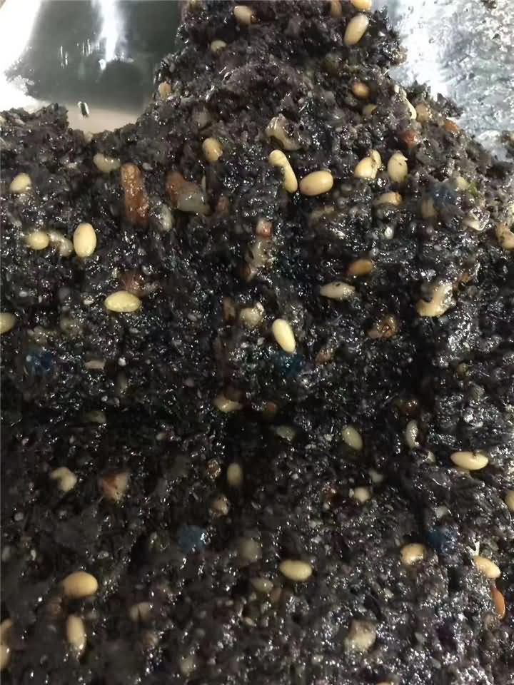 第二天客戶便帶著純黑芝麻松子仁餡料,粒粒松子仁都能看得見