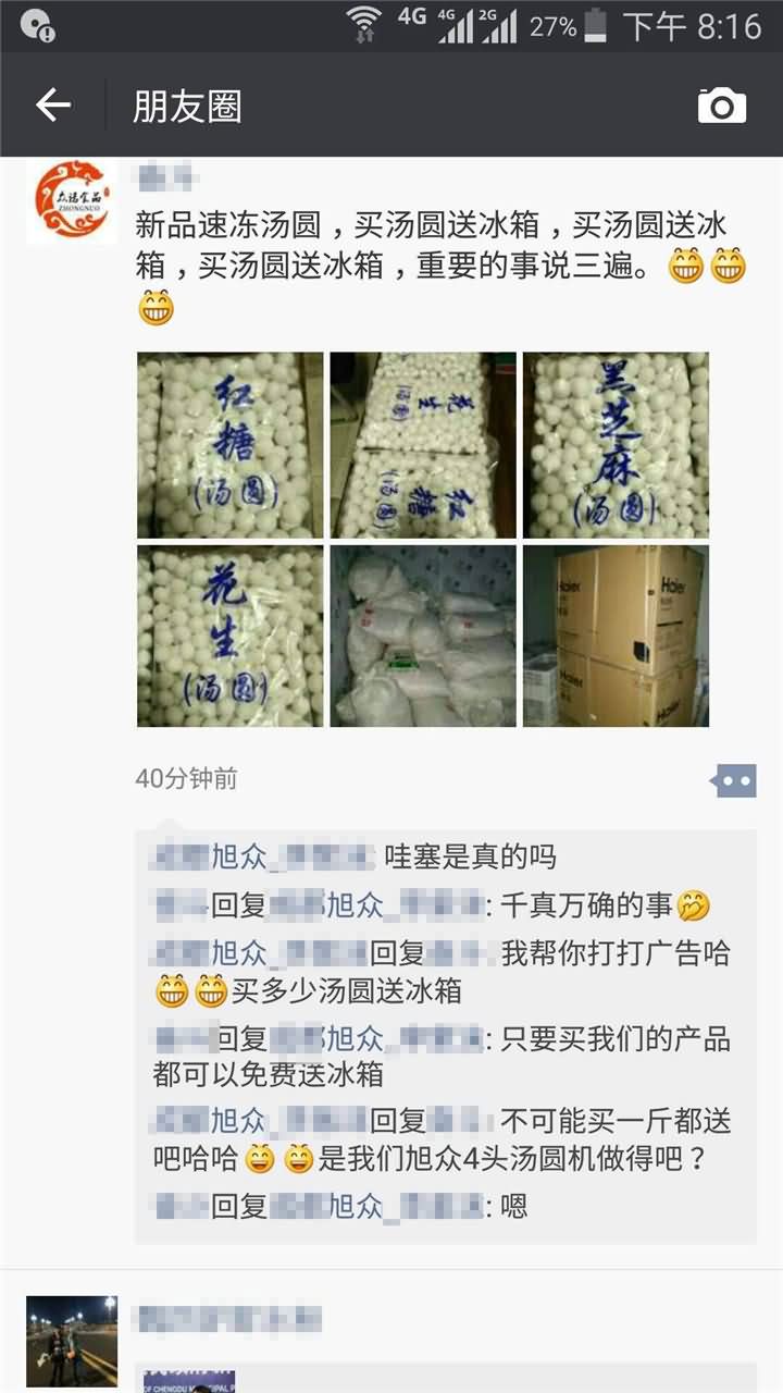 感謝眾諾對(duì)旭眾湯圓機(jī)品牌的認(rèn)可和支持,用大型商用四頭湯圓機(jī)生產(chǎn)各種餡料的湯圓效果沒(méi)得說(shuō),為了推出湯圓客戶的營(yíng)銷方案也是絕了,只要購(gòu)買他們品牌的湯圓均送電冰柜,現(xiàn)在不知道還有沒(méi)有這個(gè)活動(dòng),不過(guò)先上一波用湯圓機(jī)做湯圓成品圖: