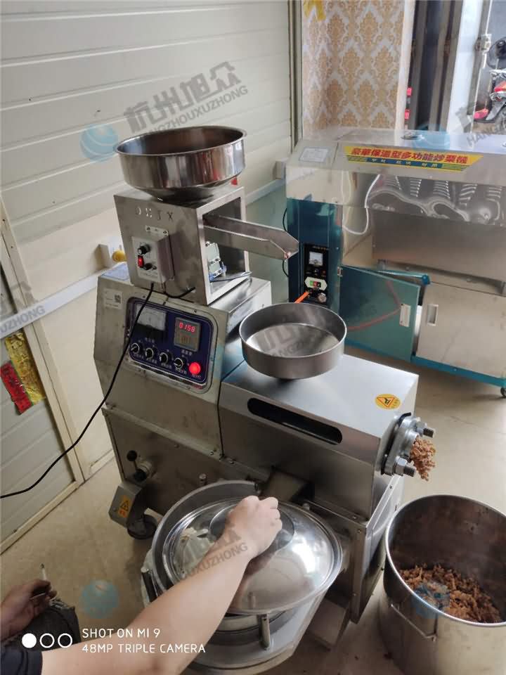 旭眾榨油機有小型也有大型,根據客戶產量需求及價格方面的考慮,XZ-Z505H小型立式榨油機也不失為一種選擇,只不過沒有師傅上門調試服務,不過榨油機操作非常簡單,可與師傅視頻一對一的指導培訓即可,客戶剛剛學會操作榨油機熟榨花生油的現場:
