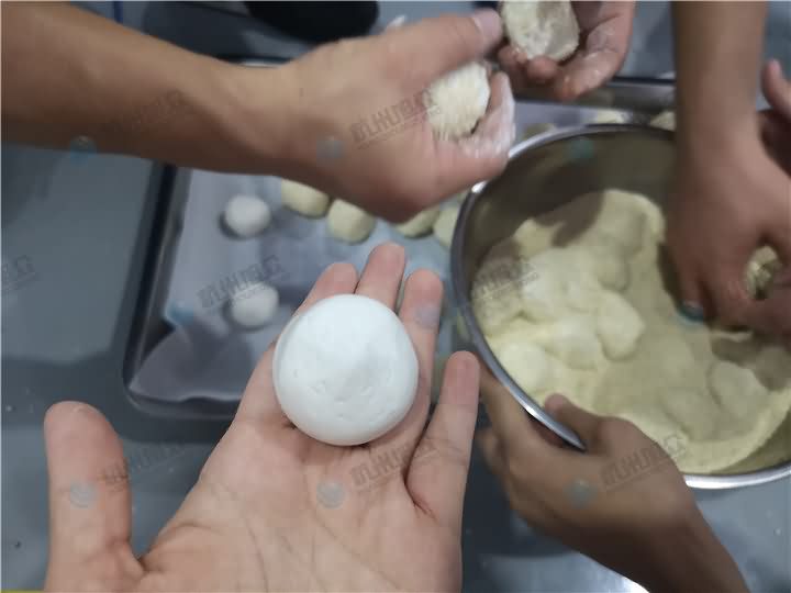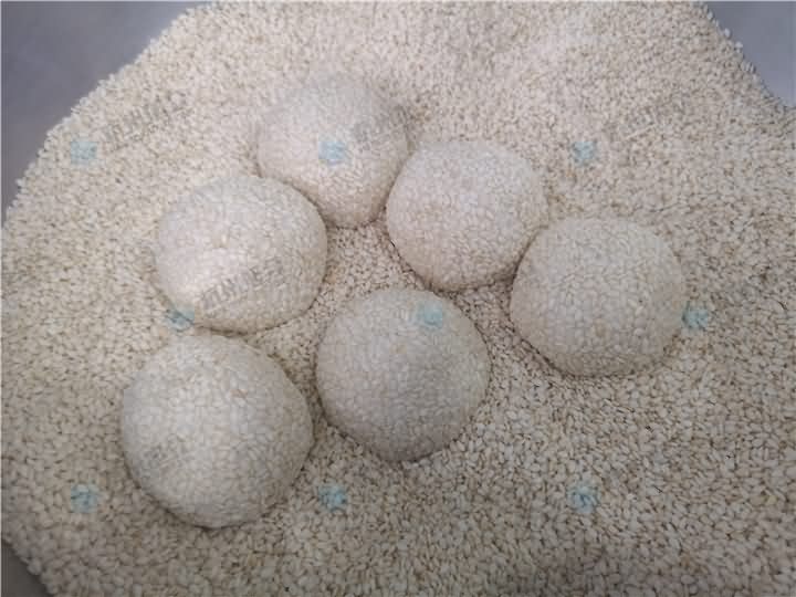 包餡機(jī)做的麻球就是好吃,就是缺一臺(tái)裹粉機(jī)器