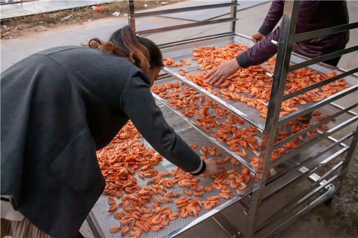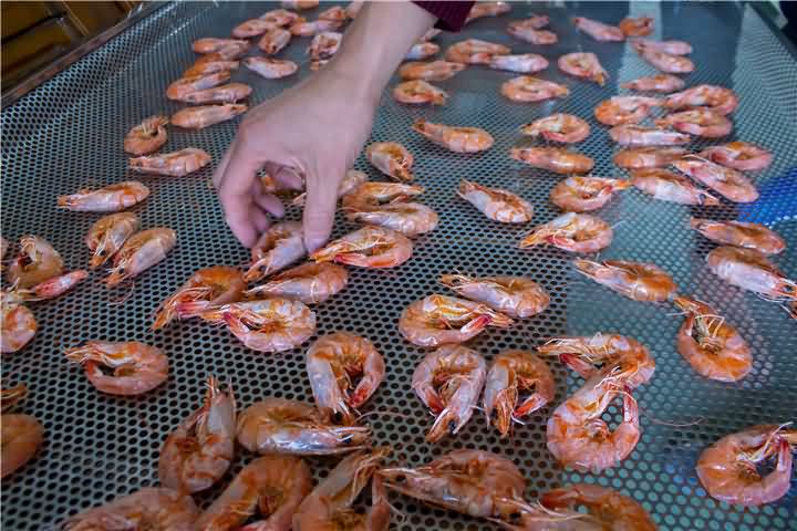 海鮮烘干該選擇什么樣的烘干方式呢?平常的不帶味的食品都是用高溫烘干效果,海鮮如果你還使用高溫烘干就會導致發臭的問題,那么該如何烘干呢?自然低溫高效烘干房是不錯的選擇!針對海鮮、煙熏肉等食品烘干。那么我們來看看烘干房低溫烘干蝦的前后對比效果: