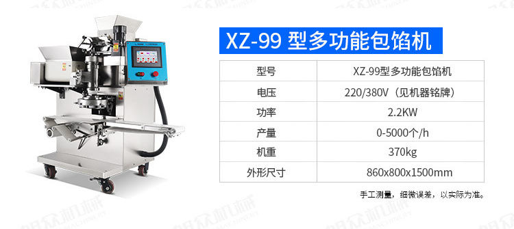 SZ-64型多功能自動(dòng)包餡機(jī)采用臥式輸面輸餡系統(tǒng),運(yùn)行流暢,效率高。可生產(chǎn)豆沙、蓮蓉、五仁餡等較干餡料的包餡類產(chǎn)品,制出的產(chǎn)品餡、皮比例可任意調(diào)整,制品大小統(tǒng)一,外形美觀。